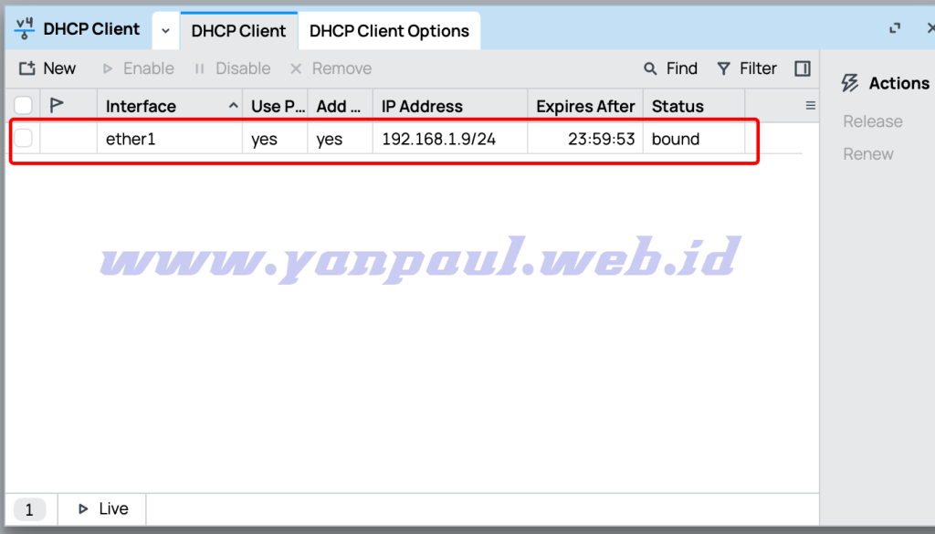 • Penting: Pastikan statusnya berubah menjadi Bound dan router mendapat IP Address.