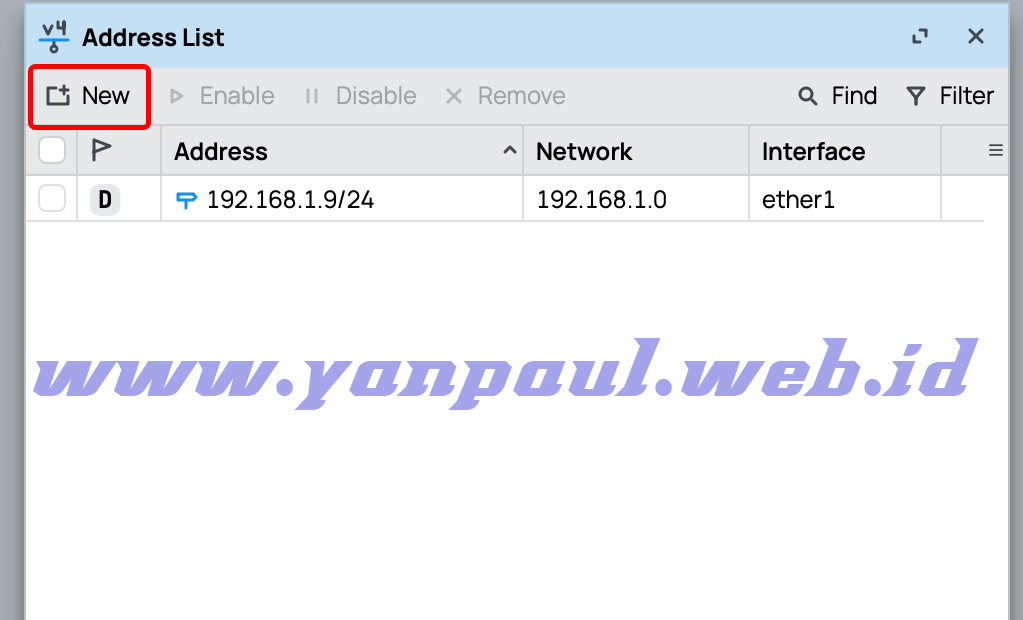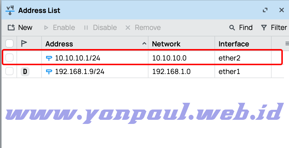 Sekarang, kita buat alamat untuk jaringan lokal kita sendiri.