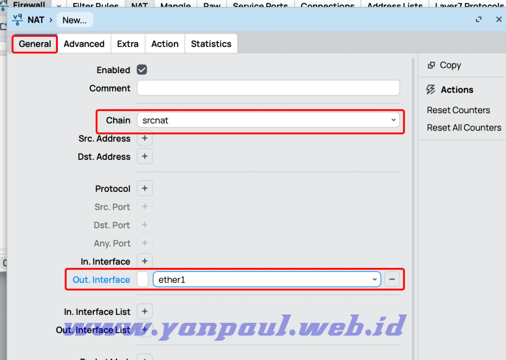 • Out. Interface: pilih ether1 (gerbang keluar internet).