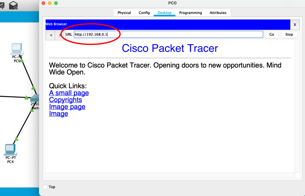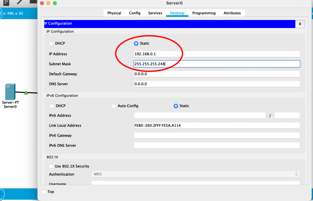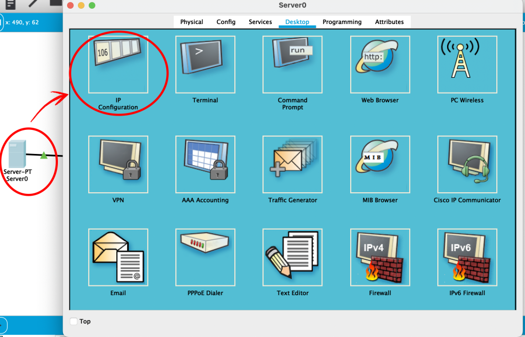 Klik Server-PT, pilih menu Desktop dan klik IP Configuration