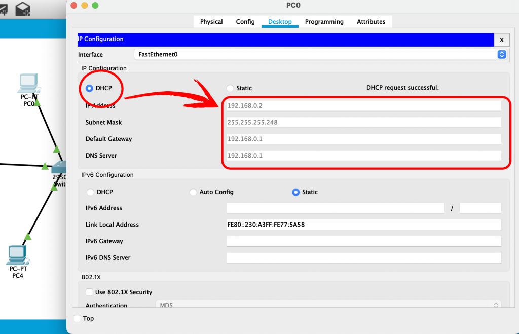Pilih DHCP dan tampil IP Address secara otomati seperti pada gambar.